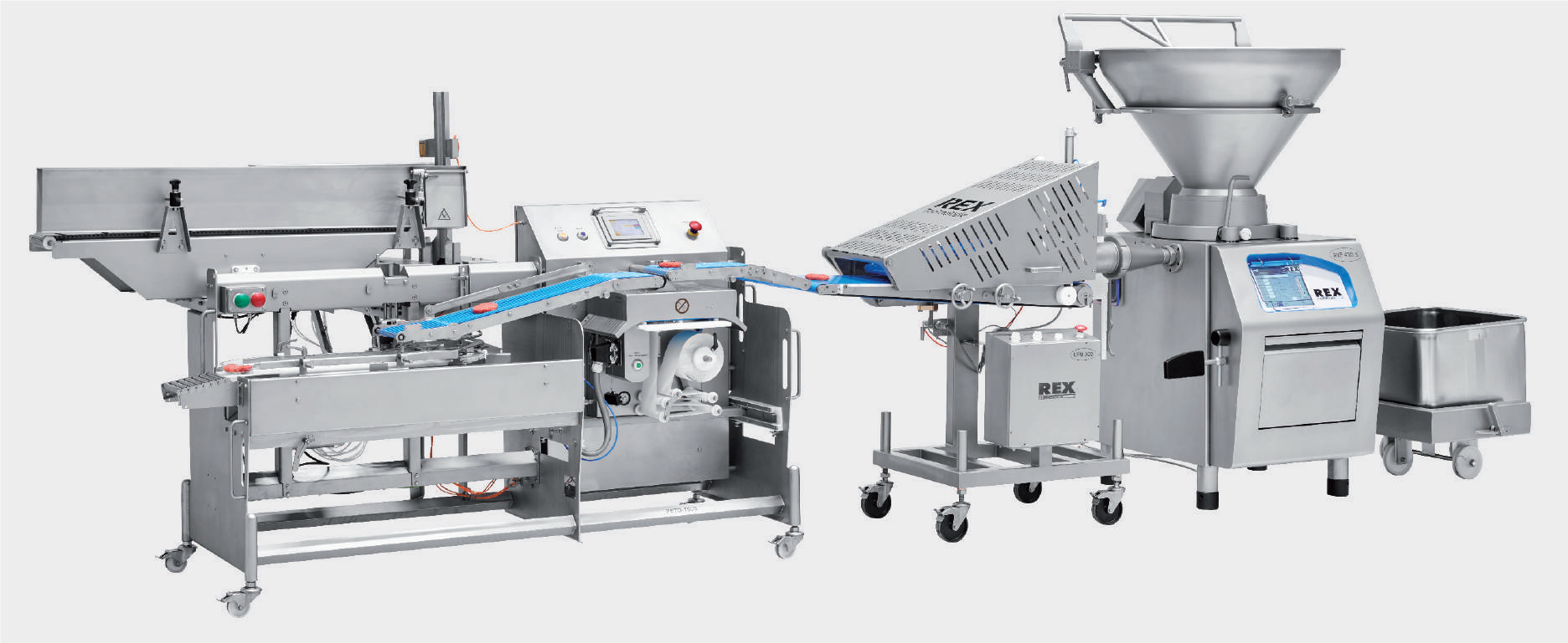 REX RVF vacuum fillers and UFM universal former for plant-based patty production. -